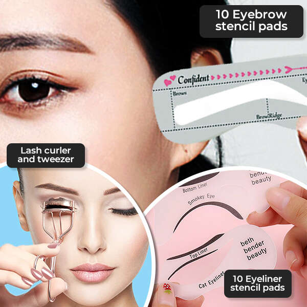 Uzyskaj precyzyjny i profesjonalny makijaż oczu! Ten zestaw zawiera szablony, zalotkę i wysokiej jakości pęsetę, dzięki której Twoje oczy będą wyglądać nieskazitelnie.